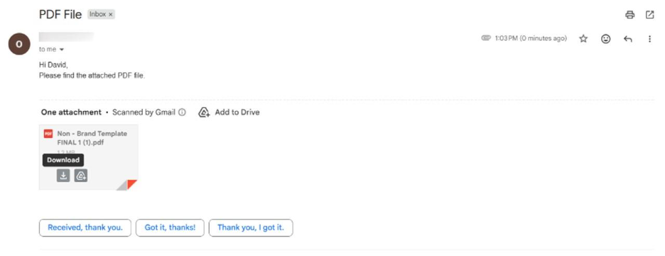 - Select the icon Download icon on the attachment to then save it to your local device.