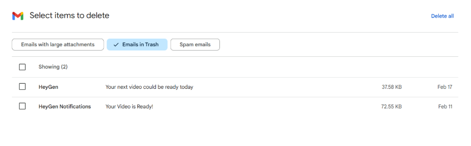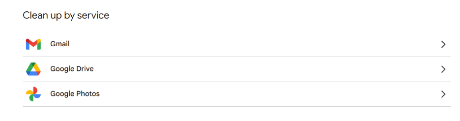 - You can then move on to clean up emails by service. You can separately clean up “Gmail,” “Google Photos,” and “Google Drive.”