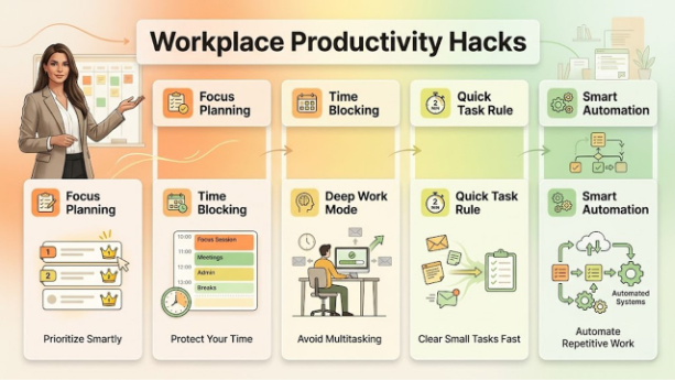 Do you want to boost productivity in your workspace? Explore the top 10 productivity hacks of 2026, which are aimed at boosting employee performance and reducing work-related stress.